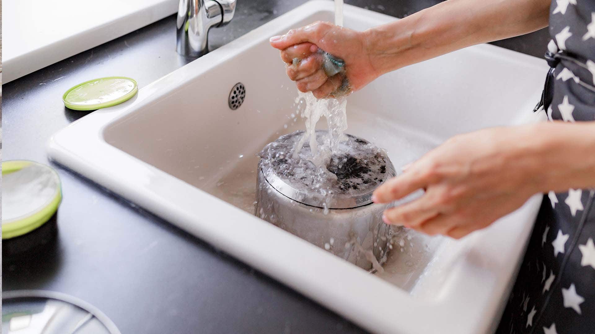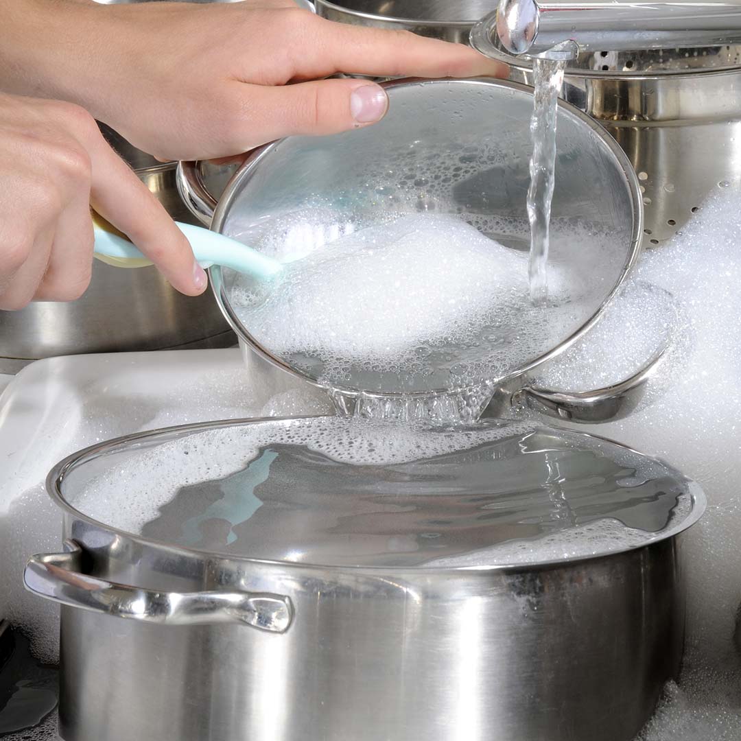 • Jetzt kannst du den Topf ausspülen und auswischen.