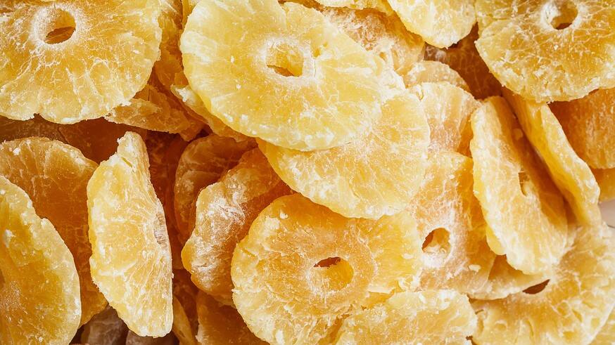 Getrocknete Ananas ist das ganze Jahr über erhältlich.