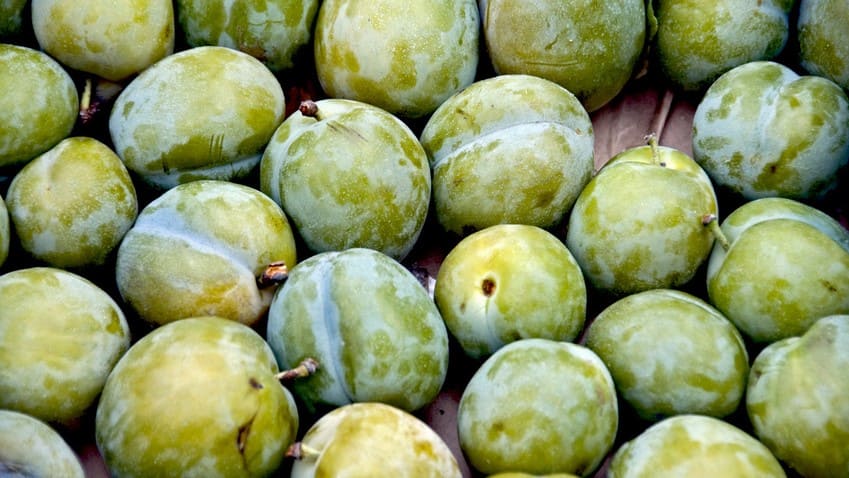 Die wohlschmeckenden, süßen Steinfrüchte, die den Beinamen „Zuckerpflaume“ tragen, liegen in der Größe zwischen Mirabellen und Zwetschgen und gehören auch zur Familie der Rosengewächse. Die Edel-Pflaume hat die kugelige Form einer runden Pflaume und ist gelbgrün ausgefärbt.