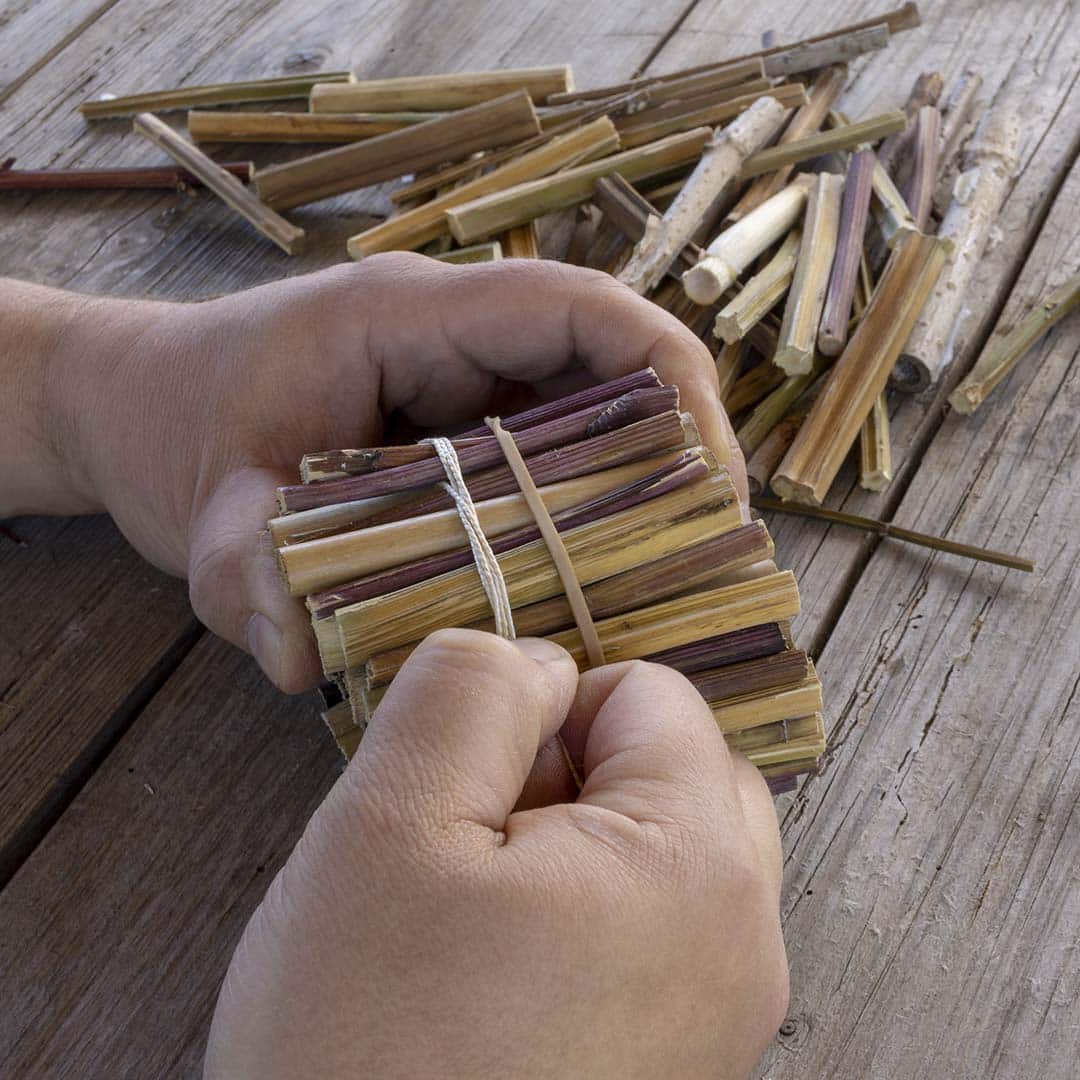 Als Nisthöhlen eignen sich hohle und markhaltige Pflanzenstengel, darunter Bambusröhren oder Schilfrohre. Aber auch angebohrte Rundhölzer bieten Raum zum Nisten. Die Niströhren sollten unterschiedlich groß sein, so finden Wildbienen und Wespen ihr passendes Plätzchen. Ideal ist ein Durchmesser von zwei bis zehn Millimeter und eine Tiefe von bis zu 12 Zentimetern.