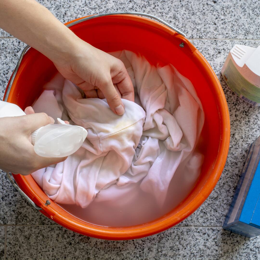 • Ist der Fleck danach immer noch sichtbar, weichen Sie das T-Shirt erneut ein.
