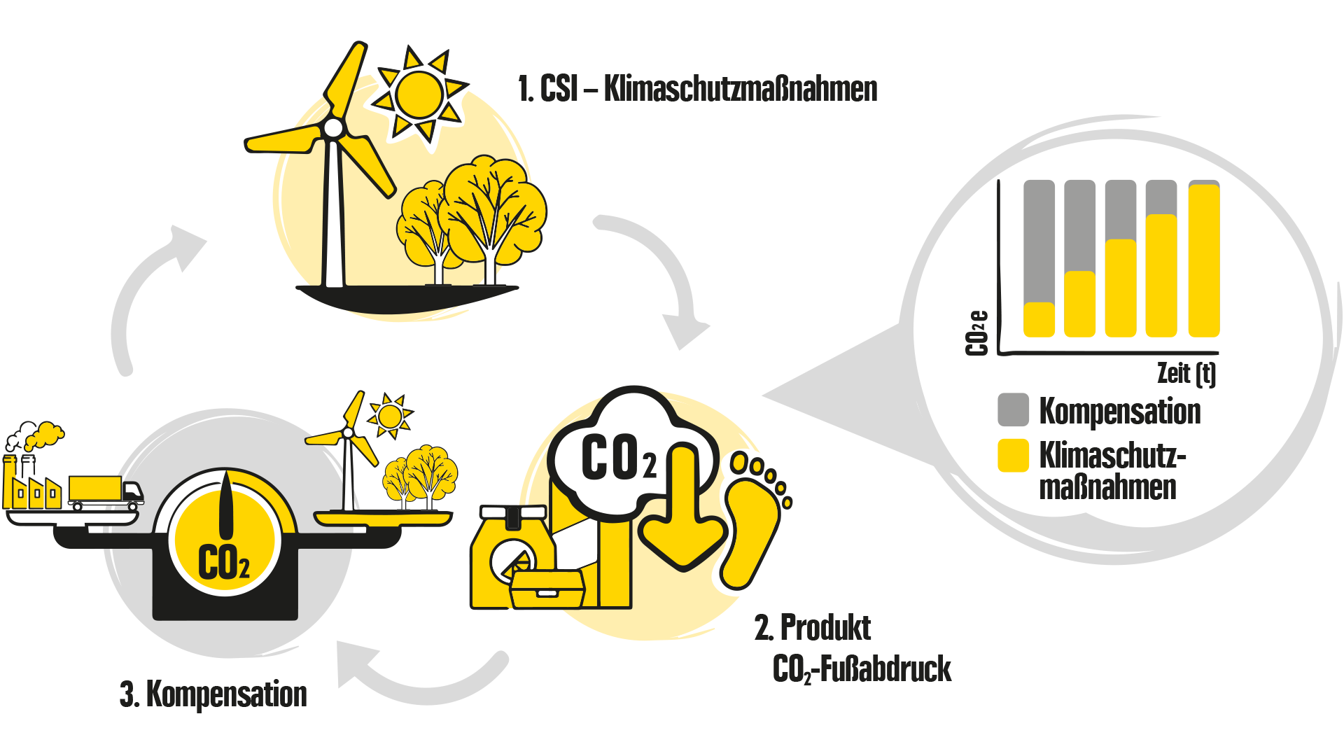 Wenn sich Treibhausgas-Emissionen nicht mehr vermeiden und reduzieren lassen, kommt deren Ausgleich durch Investitionen in Klimaschutzprojekte in Betracht. Dies sind Projekte, die nachweislich Treibhausgas-Emissionen einsparen und somit das Klima schützen, z.B. durch Aufforstung oder den Ausbau erneuerbarer Energien. Die Prüfung des tatsächlichen Nutzens der Projekte wird von Qualitätsstandards vollzogen. Die ausgeglichenen Treibhausgas-Emissionen werden in Form von CO²-Minderungszertifikaten verkauft, um das Projekt zu finanzieren.