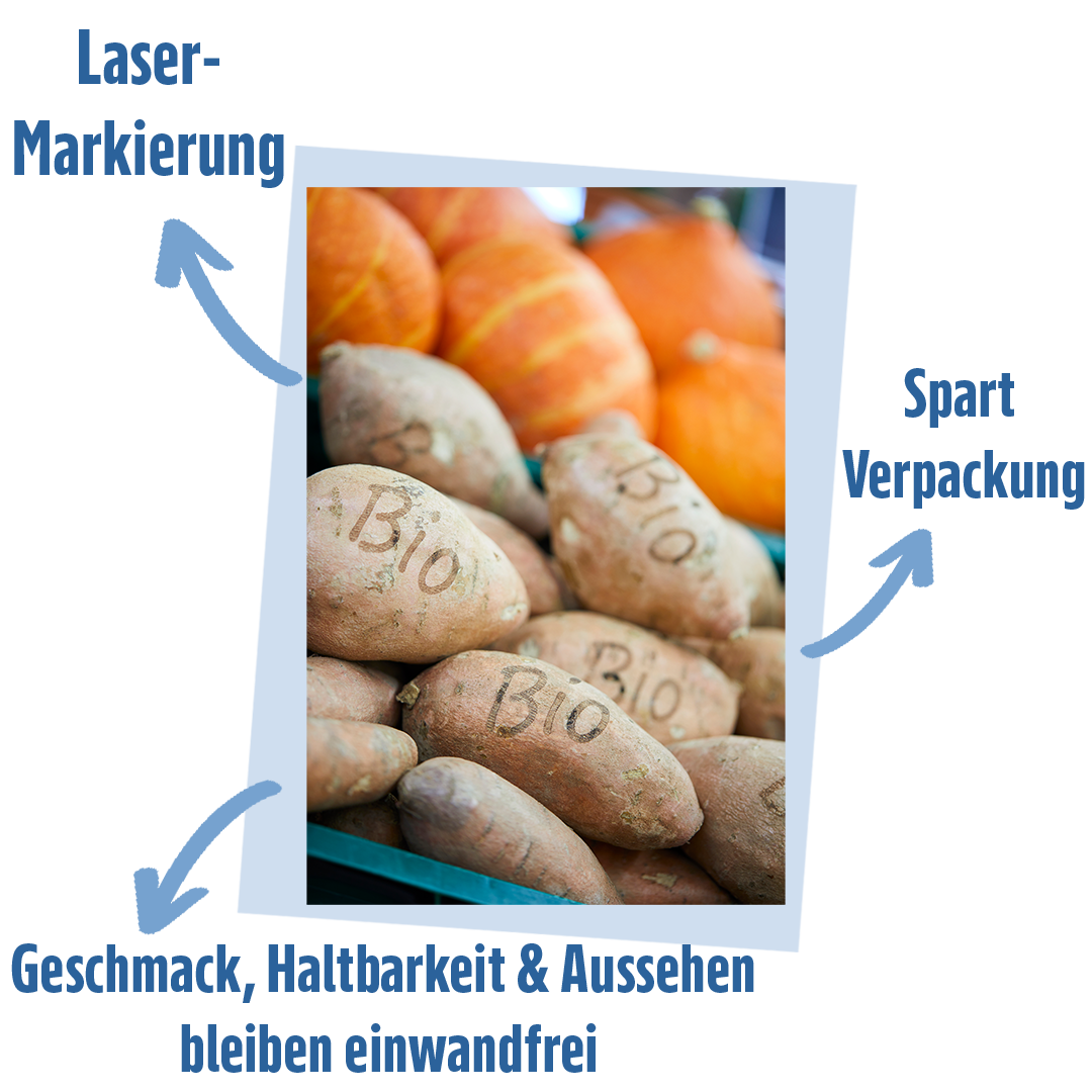 So können zum Beispiel durch das Smart Branding von Obst & Gemüse perspektivisch 50 Tonnen Kunststoff pro Jahr (allein im Bio-Bereich) eingespart werden. Wenn auf eine Verpackung nicht verzichtet werden kann, ist es unser Ziel, die Menge an verwendeten Materialien zu reduzieren.