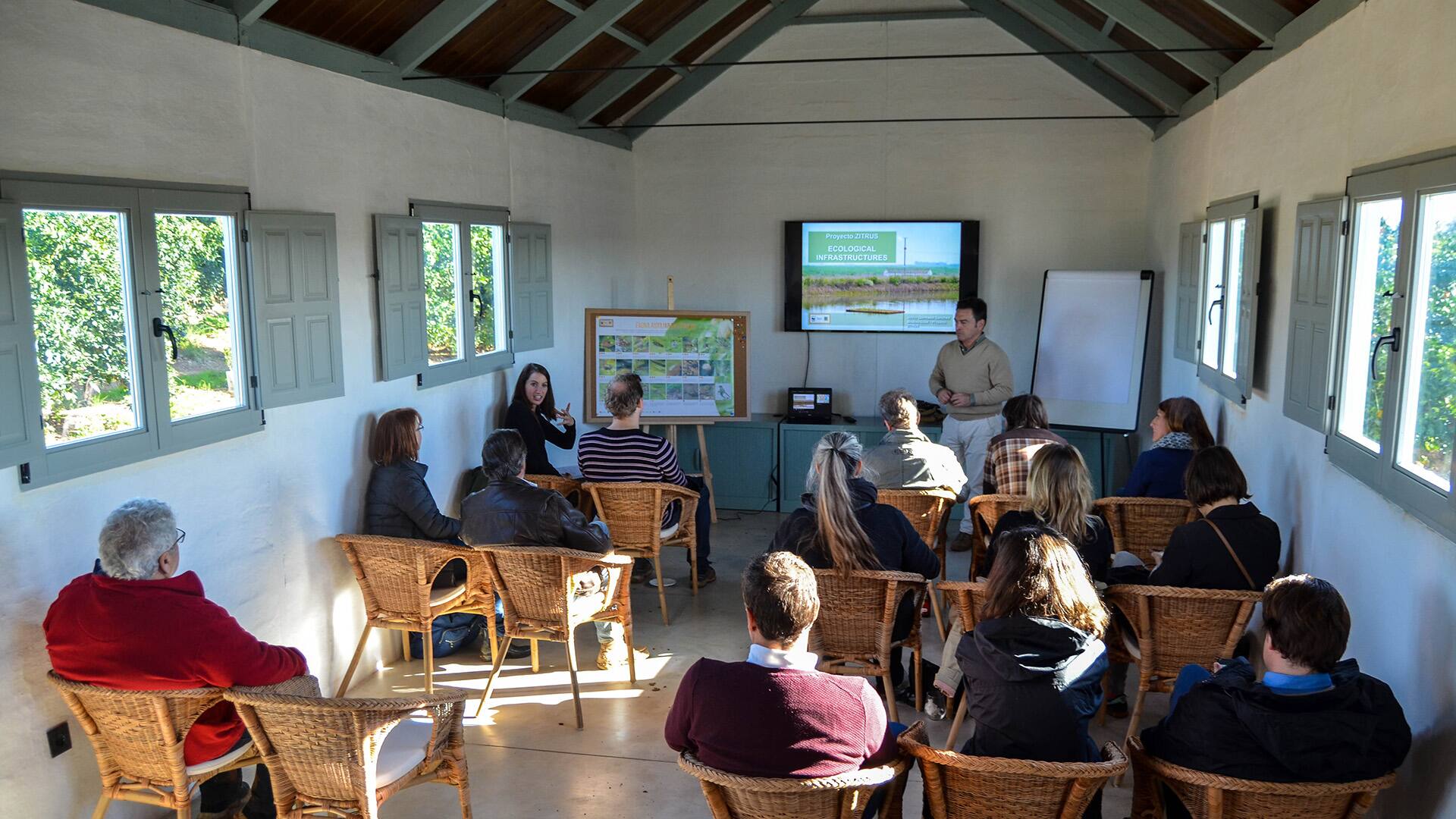 Durch ein Wasserrückhaltebecken wird unter anderem Regenwasser für eine bedarfsgerechte Bewässerung von Zitrusbäumen gespeichert.