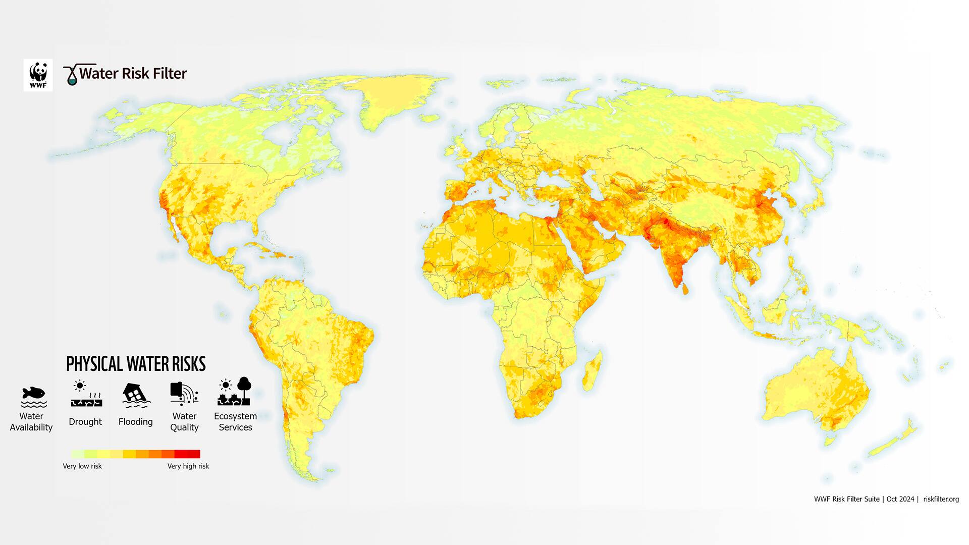 Karte des WWF Water Risk Filters zum globalen physischen Wasserrisiko