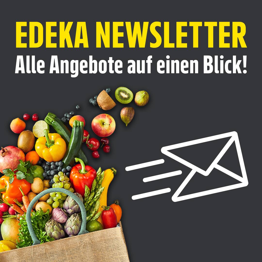 Diese Artikel sind in den mit dieser Werbung gekennzeichneten Märkten erhältlich. Für Irrtum und Darstellungsfehler übernehmen wir keine Haftung. Abgabe nur in haushaltsüblichen Mengen. Alle Preise in Euro, sie verstehen sich als Abholpreise und alle Artikel sind ohne Dekoration erhältlich. Erhältlich nur in den mit diesen Angeboten gekennzeichneten Geschäften. Alle weiteren Informationen der Firma und Anschrift Ihres teilnehmenden EDEKA-Marktes finden Sie unter