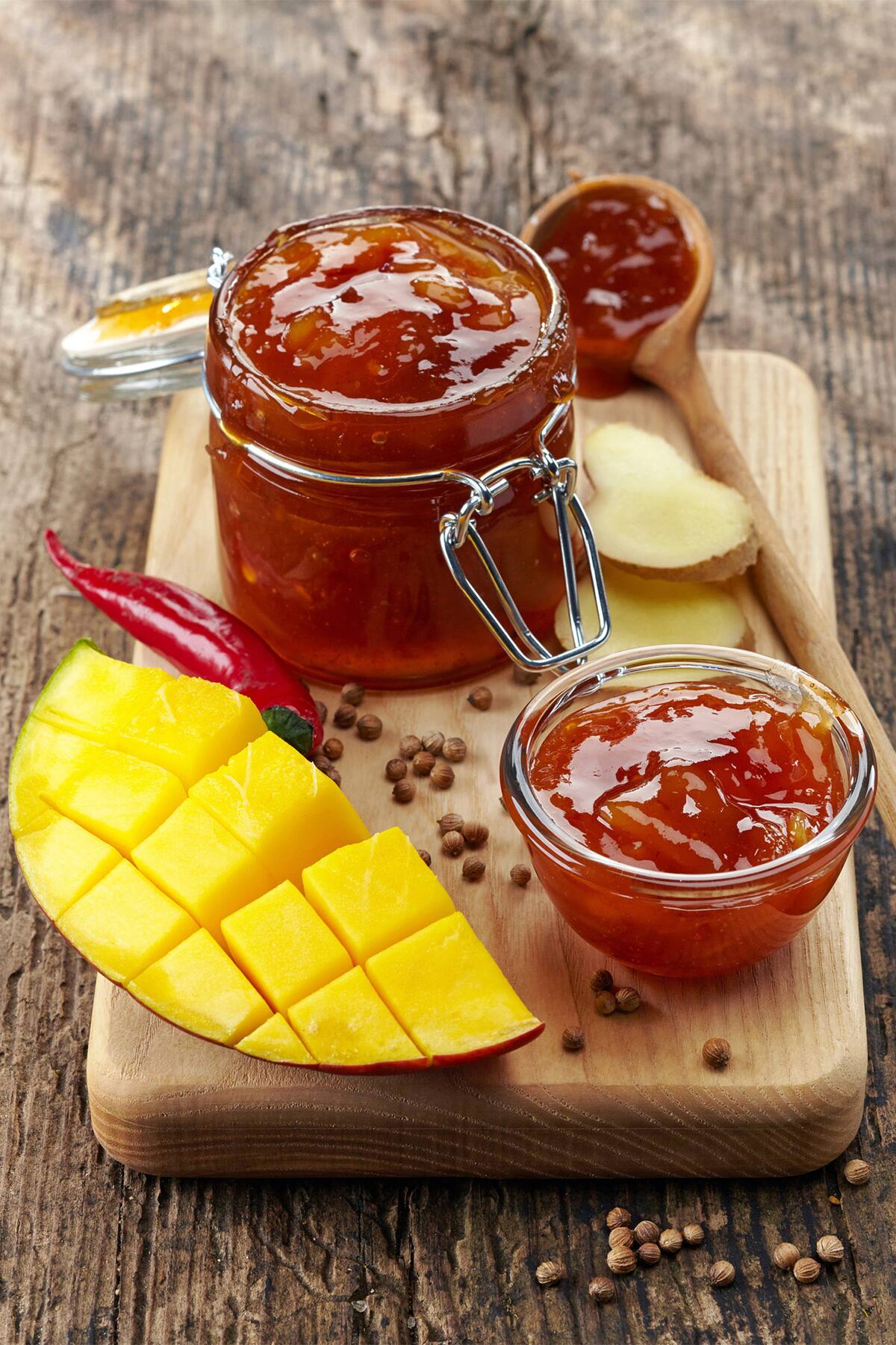 Wirklich Grenzen gibt es in der Aromenzusammenstellung kaum. Auch aus Äpfeln, Kürbis, Aprikosen oder Melonen können Sie Chutneys zubereiten. Ingwer, Zimt und Zwiebeln dienen dem Würzen, womit Sie den indischen Dip immer auf das jeweilige Gericht abstimmen können. Chutney-Rezepte zu Käse eröffnen daher natürlich andere Geschmackserlebnisse als Varianten, die Sie zu Fleisch oder Fisch servieren. Da viele Käsesorten würzige, herbe Noten tragen, passen dazu die leicht süßlich-pikanten Dips wie unser