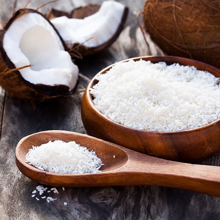 Das Fruchtfleisch der Kokosnuss lässt sich direkt frisch verzehren. Aus der Kopra, wie das getrocknete Fruchtfleisch genannt wird, lassen sich unter anderem Kokosöl, Kokosmilch, Kokosmehl und Kokosflocken beziehungsweise -raspeln herstellen. So können Sie bei Ihren Kokos-Rezepten vielfältig experimentieren und zum Beispiel einen köstlichen Kokos-Käsekuchen backen.