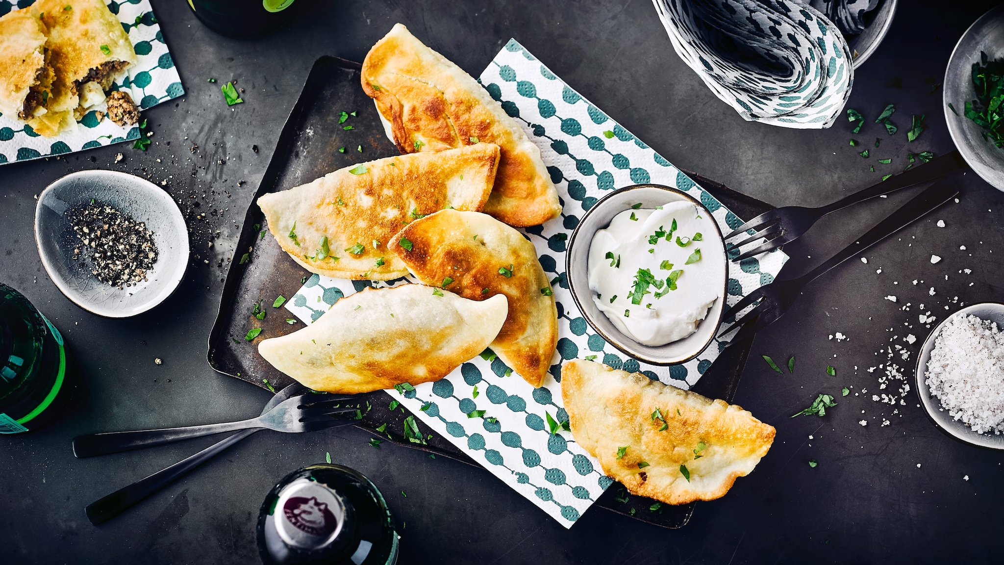 gefüllte Teigtaschen weit verbreitet. Sie lassen sich mit Fleisch füllen oder vegetarisch mit Gemüse, ganz nach Belieben.