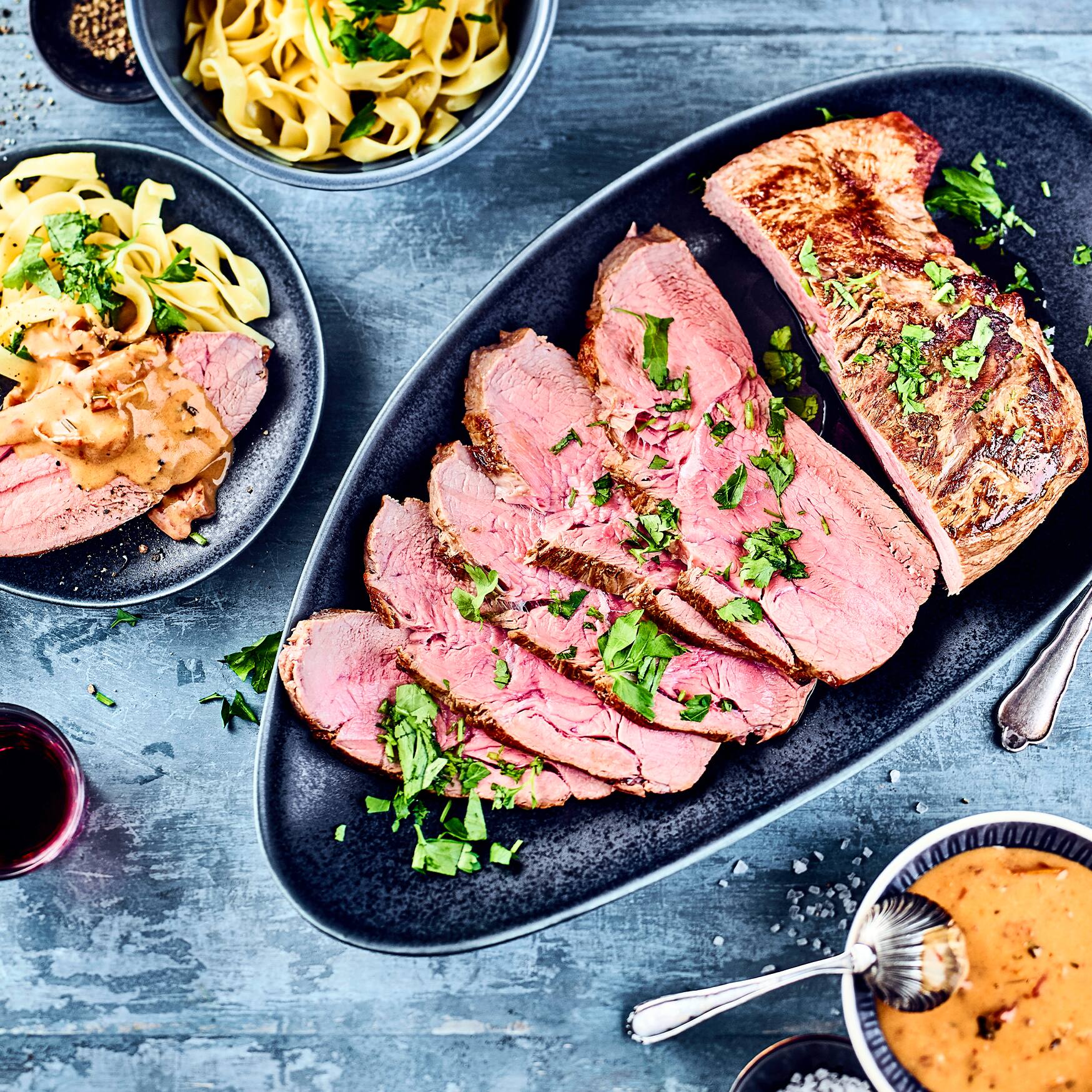 Sie suchen nach einem Rezept für einen besonderen Anlass? Dann probieren Sie unseren Braten vom Kalb mit Portweinrahm. Das lange Garen im Ofen bei relativ niedriger Hitze sorgt für besonders zartes Fleisch. Dazu passen Bandnudeln und ein Gläschen Wein, zum Beispiel vom Ortenauer Weinkeller.