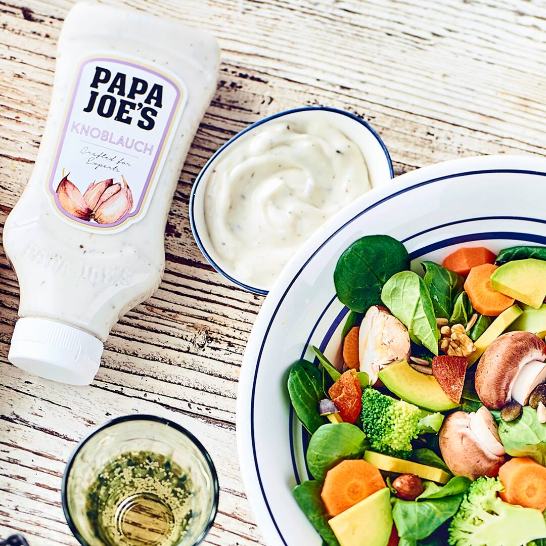 Heißbegehrt ist auch Papa Joe’s Knoblauch-Sauce – sie sorgt für die richtige Würze auf der Zunge und der Grilltafel. Dein Mix aus frischem Knoblauch und feinen Kräutern passt nicht nur zu Gegrilltem und Gebratenem, sondern ist auch ein leckerer Dip zu Brot, Gemüse, Kartoffeln oder Feta.