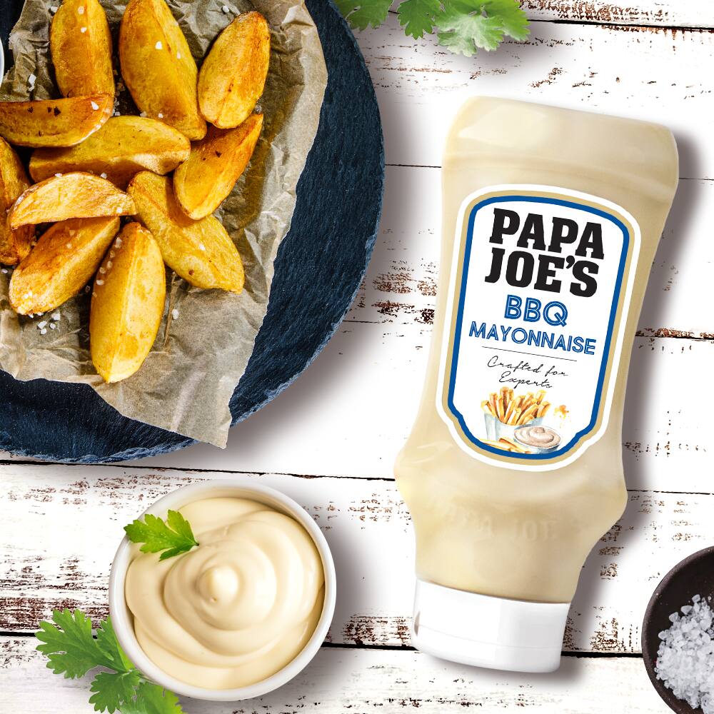 High-Noon für Pommes Frites, Folienkartoffeln vom Grill oder knusprigen Kartoffelspalten aus dem Backofen, Papa Joe’s fein-würzige BBQ-Mayonnaise ist in der Stadt! Mit ihrem leicht cremig-würzigen Geschmack, ihrer perfekten Balance aus Süße und Säure und natürlich ohne künstliche Farbstoffe und Aromen trifft sie nicht nur beim Grillen den Geschmacksnerv der Gäste. Kleiner Tipp: Auch klassischer Kartoffelsalat lässt sich mit ihr prima aufpeppen. Einfach mal probieren!